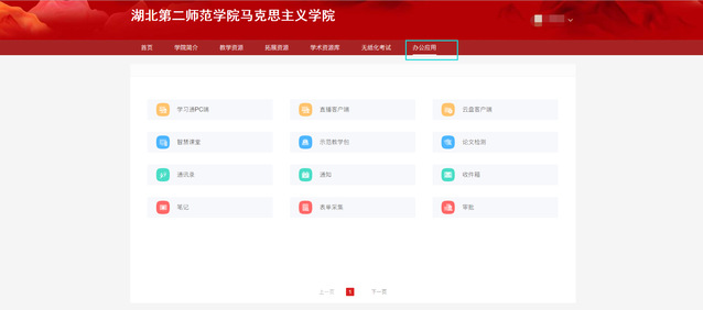 6、数字马院智慧教研室:分别设置《马原》、《概论》、《纲要》、《思修》、《形策》、思政专业智慧教研室,推进马院基层教学组织信息化建设。每个智慧教研室都配有大显示屏,能显示数字马院所有信息,并与校内信息化平台相通,是数字马院的一部分。