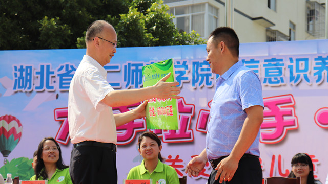 官渡口镇中心小学校长向洪涛表示,湖北二师捐赠的图书、诚信书凳模式以及今天捐赠的爱心课桌凳,都会对小学产生影响,定不忘恩情,办好人民满意的教育。