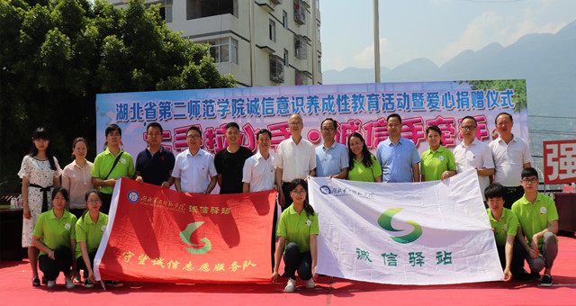 校党委宣传部、校团委、巴东县官渡口镇委、镇中心小学等单位负责人与伟徳官网诚信驿站志愿服务团队骨干成员、官渡口镇中心学校师生等参加了捐赠仪式。