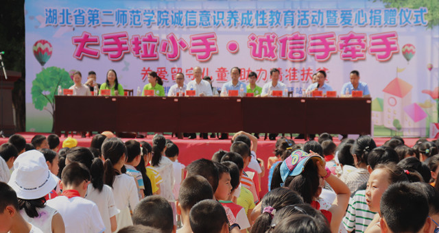 本网讯(记者 严领)5月17日上午,“大手拉小手,诚信手牵手”BV伟德官方网站诚信意识养成性教育活动暨爱心捐赠仪式在官渡口镇中心小学操场举行。BV伟德官方网站党委常委、副校长黄颂,巴东县委常委、副县长向宁,县教育局副局长谭明生出席。巴东团县委书记刘珊主持仪式。