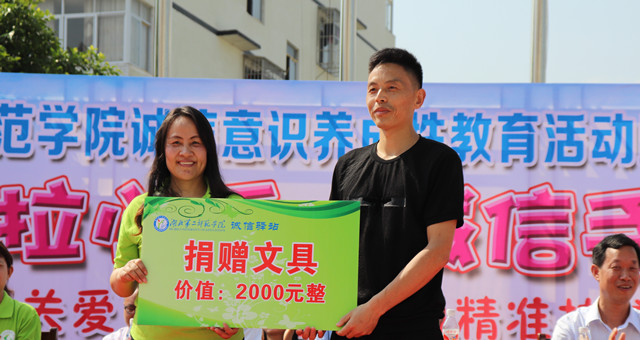 随后,黄颂向巴东县教育局捐赠由爱心企业武汉市竹江世家家具有限公司注资诚信驿站守望诚信基金购置的价值6万元的200套国标课桌椅;伟徳官网党总支书记尹德蓉向官渡口镇中心小学20名贫困留守儿童捐赠由诚信驿站注资购置的价值2000元文具。