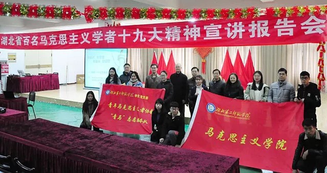 12月13日下午,湖北省百名马克思主义学者十九大精神宣讲报告会在武汉裕大华纺织服装集团有限公司三楼会议室举行。省委讲师团“理论热点面对面”专家组成员、伟徳官网教授黄红发作了题为“新时代、新思想、新目标、新征程”专题报告,分享了学习党的十九大精神的新感悟新体会。