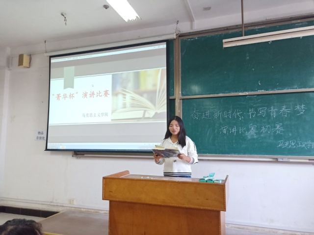 比赛伊始,主持人简短地介绍完比赛规则之后,比赛正式开始。“我认为作为一名青年干部一定要不忘初心、牢记使命,继续前行!”第一位参赛选手洪镜枝的演讲获得了评委们的称赞,她结合十九大精神,并引用习近平总书记在五四主题团日活动座谈会发表的重要讲话阐述了青年干部如何承担历史使命,为实现中华民族伟大复兴而奋斗。选手王梦姣以独特的开头吸引了在座评委,表达了自己对大学的期望,希望自己可以在今后生活中努力前行。