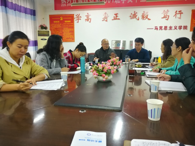 工作作出了“再检查、再动员、再整改”的总体要求,并转达了张国秀书记对马院评估不仅要过而且要成为加分单位的希望。同时提出了三点具体要求、三点特别强调、两点额外注意。
