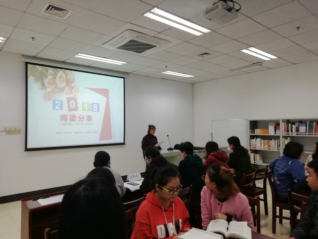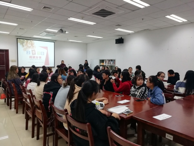 读书分享活动正如火如茶地进行着,2018级商务英语专业的吕晴分享了《名侦探守则》,2016级教育学专业舒依展代表小组分享了《亲爱的安德烈》,各组读书分享者依次上台与同学们分享自己的读书心得。