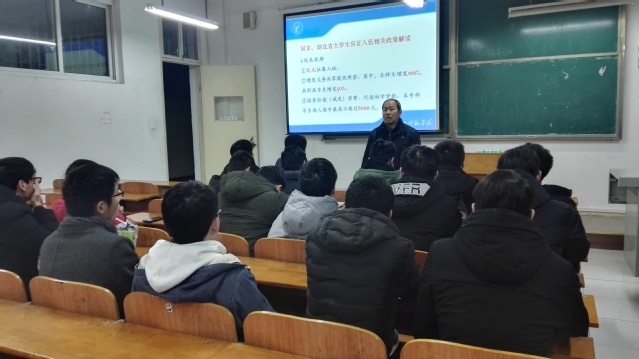 本网讯(通讯员 陈星好)1月4日下午,我院在二号楼2205教室举行2019年大学生应征入伍动员大会,我们党总支副书记宋平、辅导员陈亚琼参与会,学院全体男生以及部分女生代表参加。