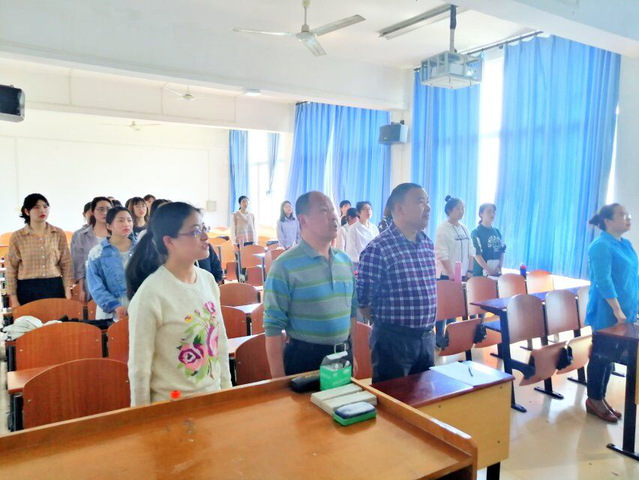 大会伊始,全体起立,奏唱国歌,典礼在国歌声中拉开序幕。