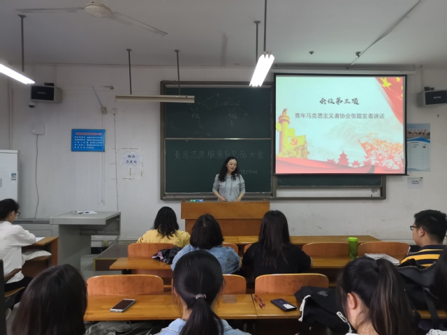 随后,青年马克思主义协会会长陈世英发表讲话。她结合自身经历,建议大家要努力做好此次实践的前期准备工作,要加强团队成员之间的交流与协作。她还指出,善于沟通,懂得变通是极其重要的技能,强调在调研的过程中,尽力和当地居民打好交道、处好关系以便做出更完整的调研报告。