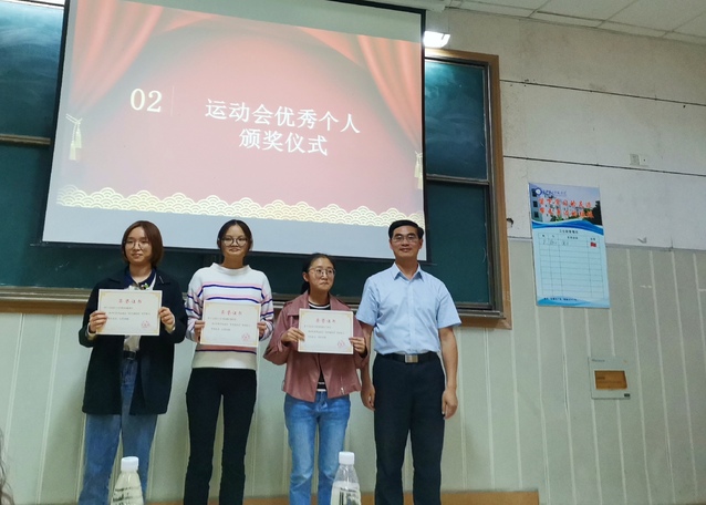 本网讯(通讯员易娉羽)11月7日中午,我们在阶梯教室五举行运动会表彰大会,我们党总支书记尹德蓉、院长黄红发、党总支副书记宋平,辅导员王一出席。