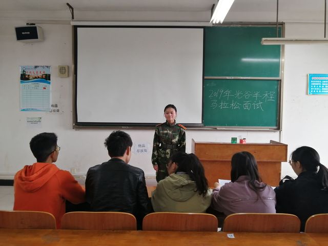 本网讯(通讯员余婵)11月13日中午,伟徳官网在二号楼2201教室开展2019年光谷半程马拉松第一轮面试,伟徳官网青年志愿者协会会长张子炎、副会长柳敬淇等5人担任面试官。