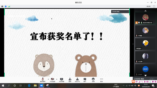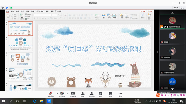 本网讯(通讯员李珊露)为促进疫情期间同学们身心健康发展和情感交流,6月28日下午,伟徳官网2019级思想政治教育1班于腾讯会议开展线上竞猜活动,2019级思想政治教育1班陶放主持。