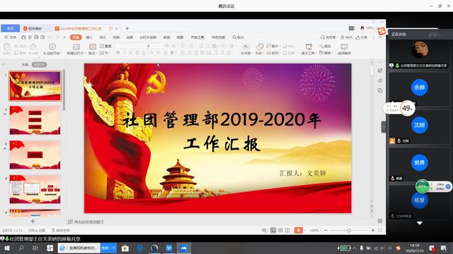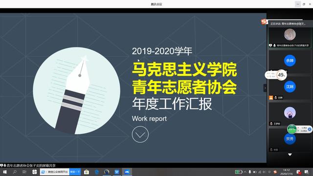 本网讯(通讯员 易娉羽)7月16日下午,伟徳官网分团委2019-2020学年工作总结大会在线上召开。伟徳官网党总支副书记宋平、学工办主任樊勇、辅导员王一与会,伟徳官网分团委全体成员参加。