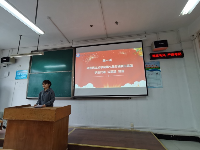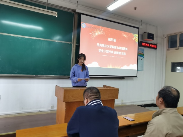 活动伊始,第七届分团委学生副书记沈丽涵发言。她在发言中讲到,过去的一年既是发光的一年,我们学生工作有条不紊,取得了可喜的成绩;同时也是值得反思的一年,指出了具体工作中的不足之处。为此,她向学生干部提出了三点建议:第一,要处理好学习与工作的关系、注重团结;第二,增强干部凝聚力,做到言行一致;第三,争做表率,发挥干部榜样作用。