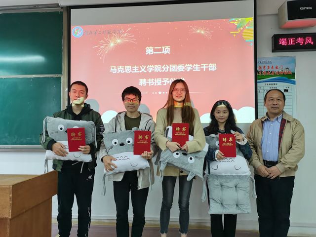 随后,我们领导为第七届分团委主要干部颁发聘书、礼品。