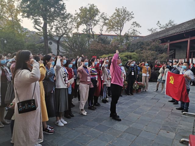首先,到达武昌农民运动讲习所旧址后,全体成员在周恩来题词的“毛泽东同志主办的中央农民运动讲习所旧址”门匾下重温入党誓词。
