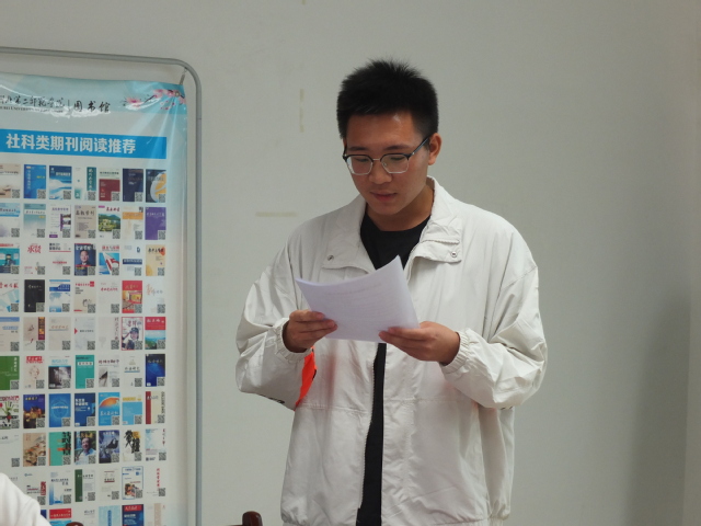 在比赛过程中,11位参赛选手依次进行了精彩的读书分享。伟徳官网2020级思想政治教育1班谭启栋以9.282的高分获得第一名,他的参赛书目是《中国经济发展的世界意义》,他从中国抗疫谈到了一带一路;从新冠疫情下国内外的应急措施和救助政策的对比引出中国经济的内功之强大;从中国经济的韧性和具有战略性的一带一路来论证中国经济之强大。伟徳官网2020级思想政治教育2班王炳森分享《谁是最可爱的人》一书,旨在纪念志愿军入朝作战70周年,赞颂新时代最可爱的人--疫情之中勇敢逆行的医护工作者。“大家都是以书会友,通过这次活动,不仅让我加深了对书籍的理解,也让我交到了很多的朋友。”参赛选手谭启栋在采访中说道。