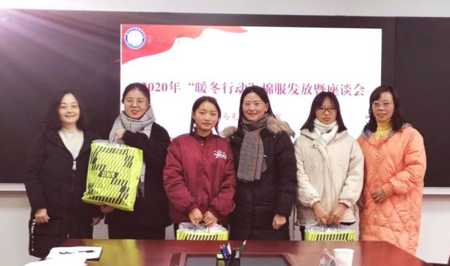 本网讯(通讯员 余希)11月25日中午,我们在二号教学楼会议室举行“暖冬行动”棉服发放暨座谈会活动。我们师友·学友联系部门校党委组织部副部长章倩、我们党支部副书记宋平、副院长张玲和蔡志荣、学工办全体成员以及受助学生参加活动。
