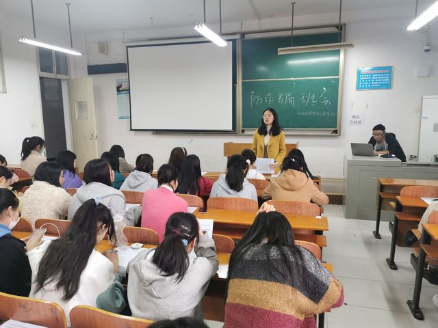 班会中,辅导员王一结合案例向学生宣讲防诈骗的相关知识,她指出,在现如今的社会,诈骗案件越来越多,手段也越来越高明,开学以来我校也出现了学生被骗事件,虽是个例,但不容忽视。犯罪分子利用一些学生的虚荣心、贪便宜、单纯等心理特点实施各种诈骗伎俩,学生在面对诈骗情况时,难以作出清晰的判断。她提醒大家不要贪图小便宜、不要随意点击网络链接、不要向陌生人汇款、不要泄露个人信息等。