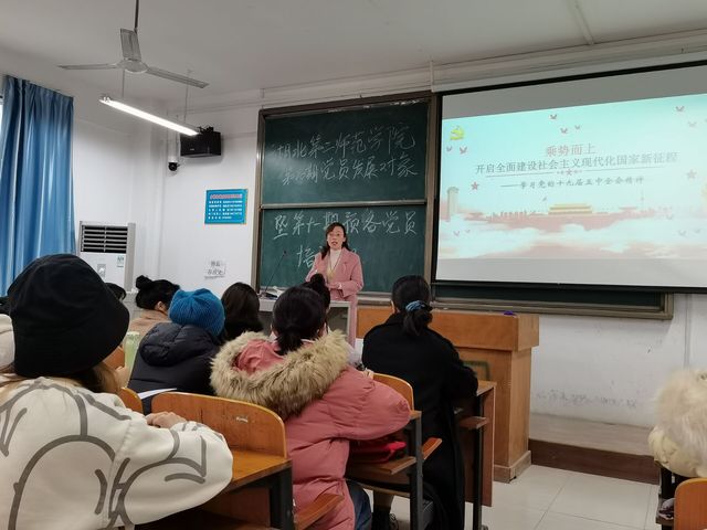 宋平发表讲话。他首先强调中国共产党的性质与地位,肯定在座学员递交入党申请书、积极向党组织靠拢的行为,同时,他对发展对象培训班学员提出三点希望:一是认真学习马克思列宁主义、毛泽东思想、邓小平理论、“三个代表”重要思想和科学发展观以及习近平新时代中国特色社会主义思想,树立正确的信仰,用科学的理论武装头脑,做到读原著、学原文、悟原理,用科学的思想指导个人行动;二是认真学习党的发展史,了解中国共产党从无到有、从弱到强的历程,了解中国人民在党的领导下把中国从一个贫穷落后的国家变得站起来、富起来、强起来的进程,了解共产党员在抗疫期间“舍小家为大家”的事迹;三是将理论知识植根于头脑,作为行动指南,指导自身行动,用党员标准要求自己,认真学习专业知识,在生活、学习中发挥榜样示范作用。最后预祝全体学员学有所获。