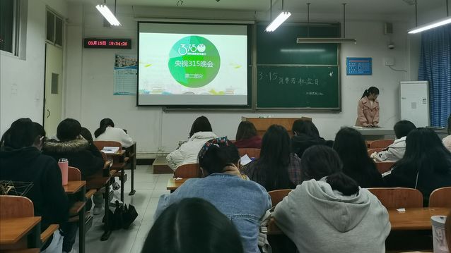 本网讯(通讯员张晓云)3月15日晚,我们各班于二号楼举行3.15消费者权益保护日主题班会,2019级、2020级思想政治教育专业全体学生参加,2019级思想政治教育1班常来圆,2020级思想政治教育1班卢友宜、2班李洁茹主持班会。