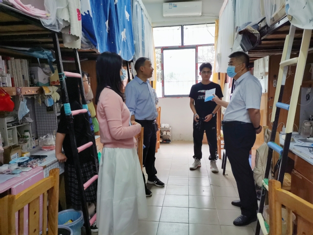 最后,在寝室走访过程中,组织部领导老师细心发现中区十四栋寝室未安装纱窗、一楼寝室存在返潮现象导致墙面、地面长霉等问题,当场表示要为同学们办实事,走访结束后会积极联系学校其他职能部门为同学们解决实际生活中的困难,落实、落细党史学习教育精神。