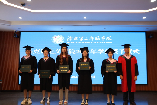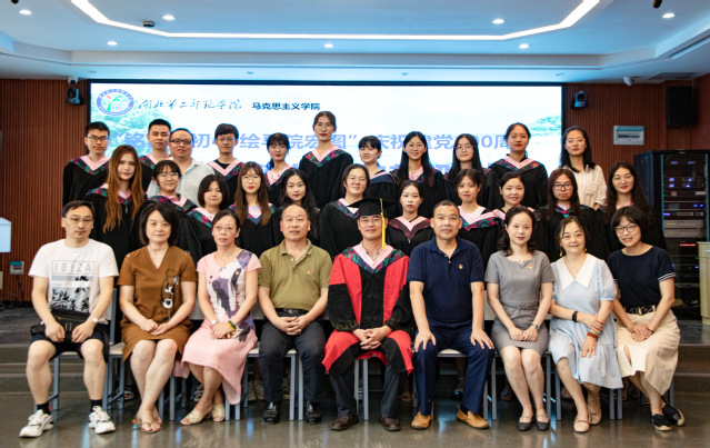 本网讯(通讯员 粟永硕)6月17日下午,我们于1号楼6楼数字马院开展“铭记百年初心 绘马院宏图”庆祝建党100周年暨“以梦为马 共赴韶华”2021届毕业生典礼,机关党委书记兼组织部副部长库文静、我院领导班子、全体教师以及2021届毕业生参与活动,2018级思想政治教育1班王梦姣主持活动。