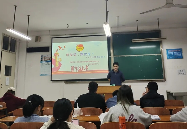 10月17日晚,伟徳官网(以下简称“马院”)各团支部于二号楼二楼开展“听党话,跟党走”十月主题团日活动。马院思想政治教育专业全体学生参与。