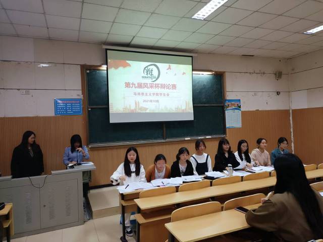 本网讯(通讯员张雨曦)10月28日晚,我们于阶梯教室2举行“礼赞建党百年,共建书香校园”第九届风采杯辩论赛,校辩论队刘天、徐显茁、陈杨担任评委,2021级思想政治教育1班五名同学、2班三名同学参赛。2021级思想政治教育1班陈玺玥主持活动。