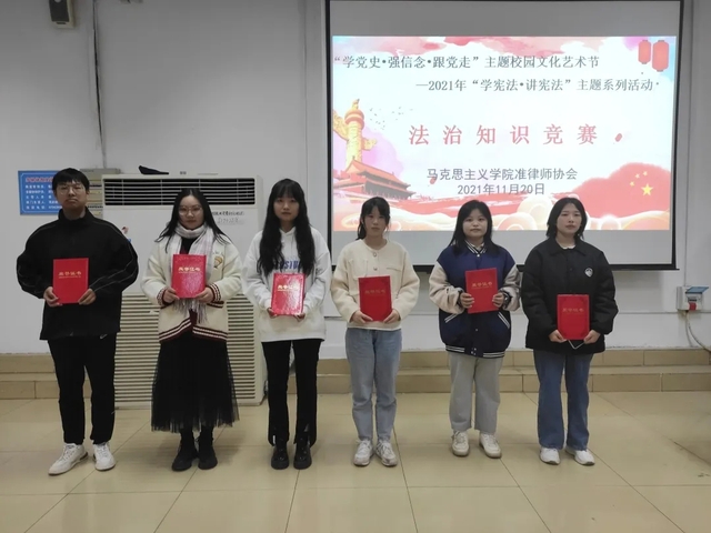 本网讯(通讯员刘佳慧)11月20日下午,我们准律师协会于旧图书馆4号报告厅举行“学宪法·讲宪法”法治知识竞赛活动,共有 8支来自不同学院的队伍参加比赛,2020级思想政治教育1班单馨怡主持活动。