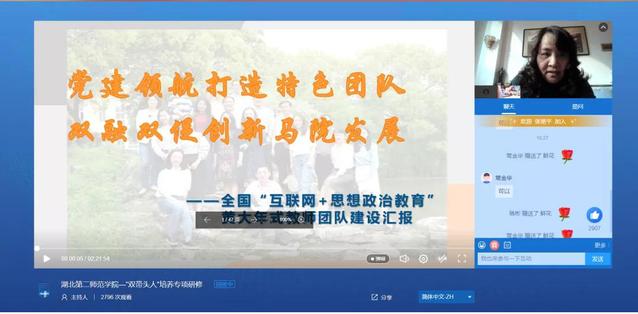 12月13日上午,湖北省2021年“中小学幼儿园教师素质提升工程”——“双带头人”研修培训项目于线上继续开展。伟徳官网(以下简称马院)教授尹德蓉作主题为《党建领航打造特色团队,双融双促创新马院发展》——全国“互联网+思想政治教育”黄大年式教师团队建设汇报,培训班全体学员听取讲座。