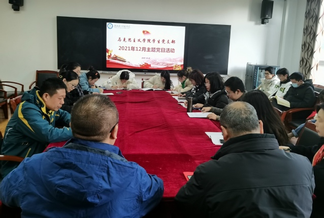 本网讯(通讯员 罗心雨)12月21日中午,我们学生党支部于二号楼二楼会议室召开“学习贯彻党的十九届六中全会精神”12月主题党日活动。我们党总支副书记宋平,学院组织员刘莹,学生党支部书记樊勇、组织委员尚峰、纪律委员吴文娟以及全体学生党员参与活动。