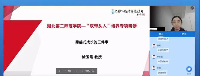 12月15日下午,湖北省特级教师、BV伟德官方网站教授涂玉霞作《跨越成长的三件事》专题讲座,湖北省“双带头人”培养专项研修班全体学员参加,此次讲座通过网络直播的方式进行。