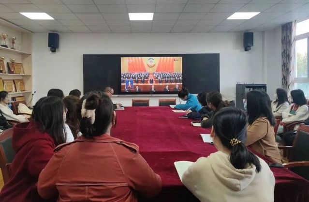 本网讯(通讯员 罗心雨)3月4日,我们组织学生于二号楼会议室观看中国人民政治协商会议第十三届全国委员会第五次会议开幕式,我们党总支书记林志红、副书记宋平,党政办公室主任吴文娟、组织员刘莹,学生党支部书记樊勇以及2018级、2019级全体学生党员参加。
