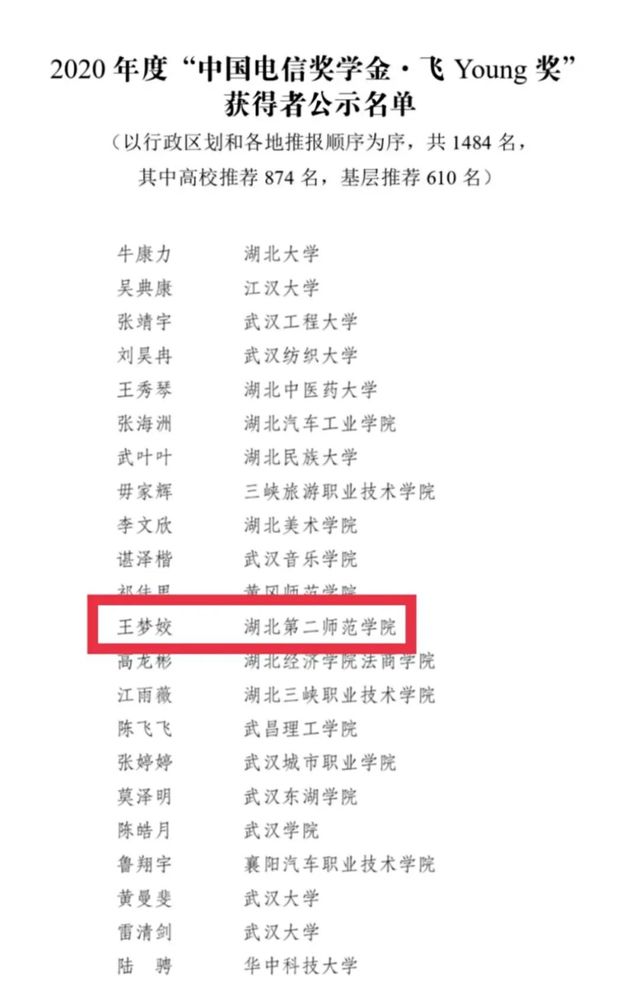 近日,2020年度“中国电信奖学金”名单公布。经校级、地市级分别推荐、省级初评和全国评审,伟徳官网(以下简称马院)王梦姣同学在评选中脱颖而出,获得了2020年度“中国电信奖学金·飞Young奖”。
