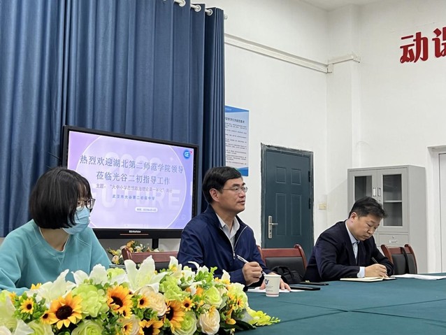 本网讯(通讯员黄慧敏)为推进光谷教师教育综合改革省级实验区建设,4月14日上午,伟徳官网院长黄红发教授一行赴武汉市光谷第二初级中学开展“大中小学思政课一体化建设”主题调研,思修课教研室主任王顺双副教授、政教系主任刘雯副教授陪同调研,光谷第二初级中学校长魏琨等校领导及部分思政课教师参加了座谈会。