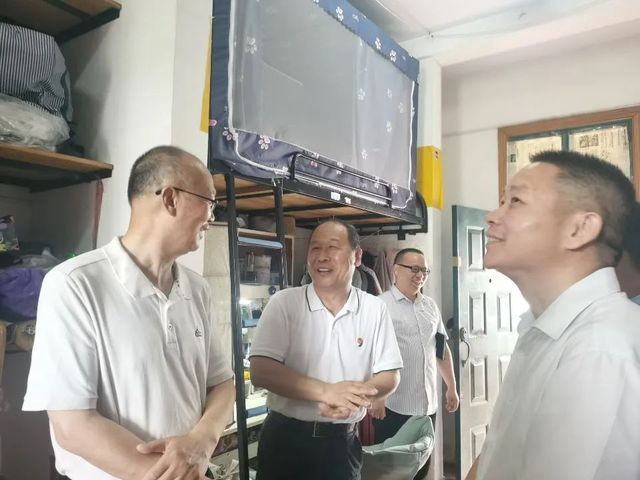 在寝室走访过程中,黄颂副校长一行与我们党总支副书记宋平及学工办主任樊勇来到中一407、408等寝室,他们首先对各寝室的卫生环境表示赞扬,随后关心了学生们的学习情况,询问同学们近期期末的复习情况。同学们在交谈中提到目前大家都在组织寝室成员开展集体复习,但部分学科复习起来比较有难度,抓不住复习重点。黄颂等人鼓励学生积极和课任老师沟通,以帮助同学们可以更好地复习。在生活方面,同学们纷纷讲道寝室环境良好、设施完备,一些故障问题在登记后会很快地被处理好。金殿中和卢郅睿也十分关注同学们的身体健康,嘱咐大家在空余时间可以多锻炼身体。最后,黄颂一行向同学们表达衷心的祝福,希望大家能够在期末考试中取得好成绩,同学们也对领导老师的到来表示感谢。