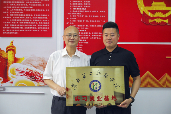 黄红发代表学校与蒲纺工业园签订合作协议;黄颂为“BV伟德官方网站蒲纺工业园实习就业基地”授牌。