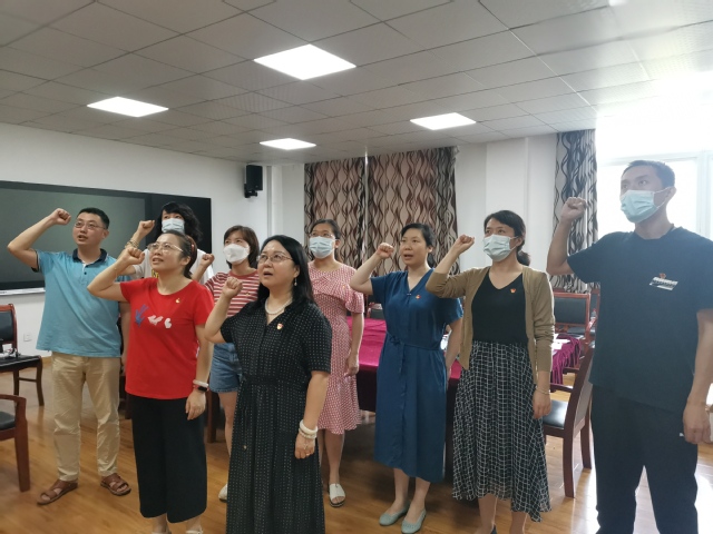 教师党支部书记曹芸同志带领参加活动的党员,面向党旗,庄严宣誓,表达了全体党员对党忠诚,为共产主义奋斗终身的坚定理想信念。