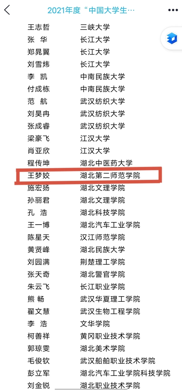 本网讯(通讯员 张奔月)近日,2021年度“中国大学生自强之星”名单公示。经校级、省级推荐及专家委员会推选,伟徳官网(以下简称马院)王梦姣同学在评选中脱颖而出,荣获2021年度“中国大学生自强之星”。