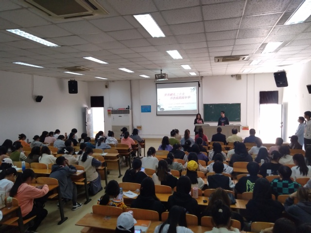本网讯(通讯员郭依帆)10月18日中午,伟徳官网在旧图书馆1号报告厅举行第十届“读书文化节”启动仪式,马院党总支书记金殿中、副书记宋平、副院长张玲、蔡志荣、分团委书记樊勇以及2021级、2022级思想政治教育专业全体同学参加活动。