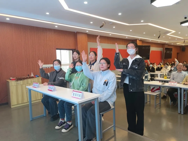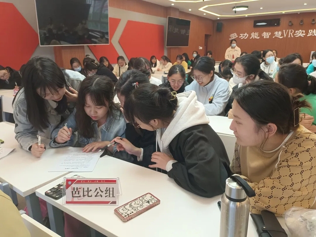 在主持人介绍完比赛规则后,本次比赛正式开始。首先进入第一轮“初出茅庐”填空题,各参赛小组在规定时间内共同完成答题卡上的题目,答题过程中小组成员沉着思考、相互配合、快速完成作答;比赛第二轮为“崭露锋芒”猜词题,每组派出两人上台,进行限时5分钟的你“话”我猜,参赛选手们在此环节展现了高度的默契,灵活的描述、夸张的动作将比赛推向高潮;最后一轮为“巅峰对决”抢答判断题,晋级小组争先恐后、举手抢答,比赛现场如火如荼。