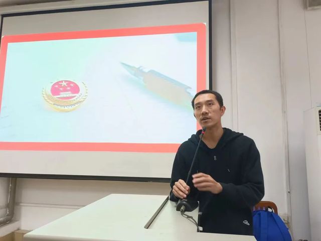 随后,他又用风趣幽默的语言使一个个严肃的法条变得生动起来。在讲述中国宪法发展历程时,朱睿列举身边实例为同学们科普宪法知识,并教导同学们要学会用法律维护自身合法权利。朱睿总结道:宪法看似离我们很遥远,但是其实与我们的生活息息相关,所以我们要深刻认识到宪法的重要性、理解宪法实施的重要意义。