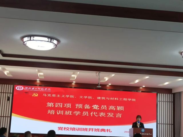 随后,建筑与材料工程学院王骏老师宣读培训班管理规定。其中,他就培训时长、授课形式、考勤记录、培训考核等方面的要求进行了宣读。建筑与材料工程学院预备党员高颖代表学员发言,她表示将会严格遵守培训班管理规定,认真学习党的相关知识。