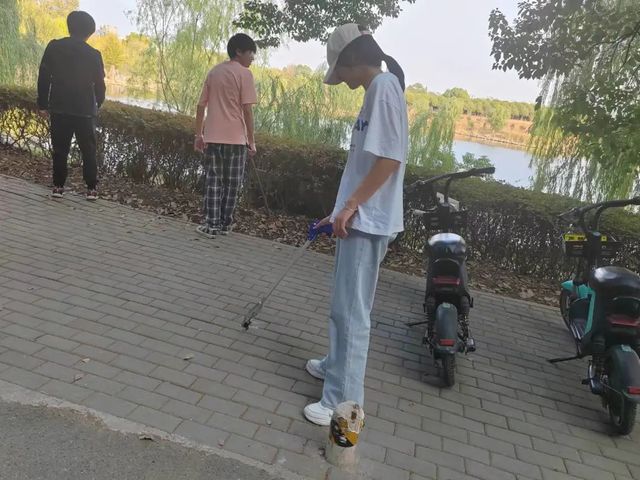 在二号教学楼后方清理杂草的小组成员手拿夹子和簸箕,认真清理路边的垃圾和杂草,不放过任何一个角落;走上勤人坡的小组成员戴着手套、拿着垃圾袋,一丝不苟地清理路边飘散的落叶。樊勇也亲身加入这场劳动教育中,以身作则,向同学们树立榜样。