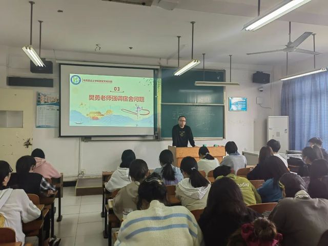 最后,樊勇老师对会议内容进行总结,并从以下五个方面进行强调:一是寝室长要积极承担责任,督促寝室成员学习,关注寝室卫生情况,及时反馈相关问题;二是禁止使用大功率电器,注意用电安全;三是要构造和谐的寝室氛围,寝室成员之间相互包容理解,及时解决矛盾;四是注意财产安全,谨防网络诈骗;五是努力学习,积极为即将到来的各项考试做准备。