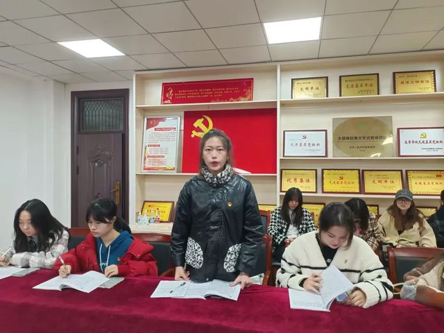 随后,2019级思想政治教育1班柯思思、易娉羽、曾媛妮和2020级思想政治教育1班崔珊珊四位同志做党员主题分享。