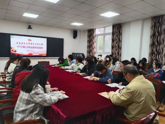 11月18日下午,我们学生党支部于二号楼二楼会议室召开11月主题党日活动。我们党总支副书记宋平以及全体学生党员参与活动。