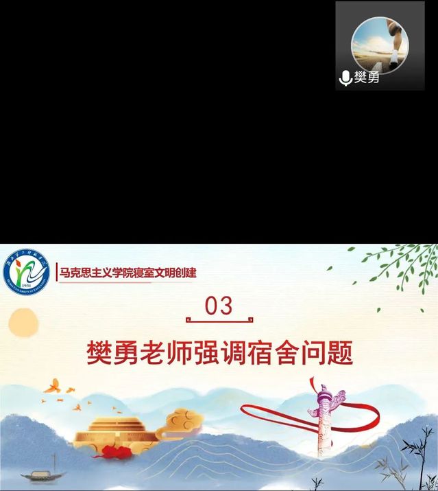12月9日晚上,我们于线上开展12月份寝室长例会。学工办主任樊勇及我们全体寝室长参加例会。