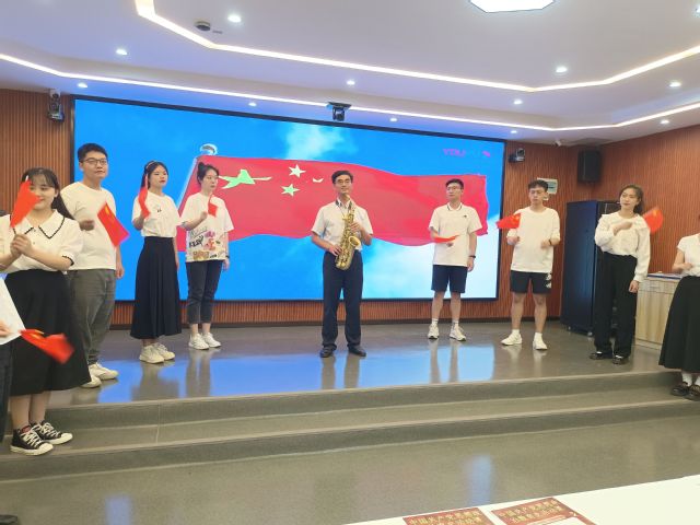 随后,10个小组按顺序登台进行展示。其中,三组学生分别表演诗朗诵《在灿烂的阳光下》《写给老师的信》《诵大年》,她们将音乐、演唱和朗诵结合起来,讴歌了以黄大年为代表的科技工作者赤诚爱国的情怀和忘我奋斗的科研精神。歌舞表演《一个妈妈的女儿》和歌曲演唱《黄河大合唱》分别用跳舞和歌唱的形式表达了学生们对祖国的爱和对为国奉献的先辈们的敬仰。紧接着,另外三组学生分别表演情景剧《足迹》《学大年精神,做时代新人》和《回忆》,学生们全身心投入的表演让人陶醉其中、流连忘返。现场成员在不知不觉中接受了伟大的黄大年精神的洗礼,灵魂得到了升华。于欣萌同学做以《一朵浪花的声音》为主题的演讲,她讲述了黄大年的英勇事迹并结合BV伟德官方网站由黄红发教授负责“互联网+思想政治教育教师团队”获首批“全国高校黄大年式教师团队”近5年取得的成果,呼吁大家为国奉献青春力量。最后,伴随着黄红发老师演奏萨克斯的优美的旋律,学生们手持小红旗,共同唱响《我和我的祖国》,现场气氛达到高潮,人人都沉醉其中。