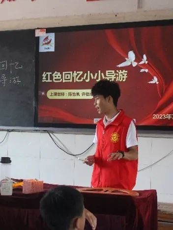 在课堂上,志愿服务队成员为学生们讲解了井冈山革命的进程以及小故事,让同学们更加全面地了解了井冈山精神的科学内涵。通过这次宣讲,希望小朋友们能传承好红色基因,赓续共产党人的红色精神血脉,把 “井冈山精神”继承下去。